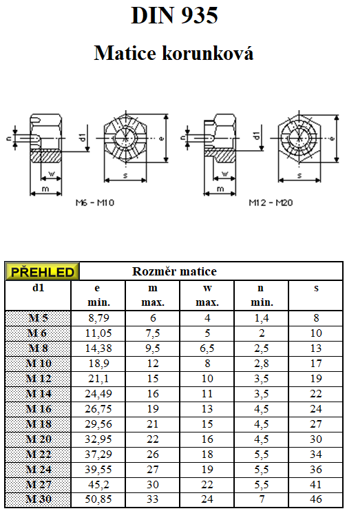 Parametry produktu Matice korunková ZN